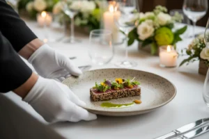 Servicio de eventos personalizado para ocasiones especiales con menús exquisitos, ingredientes frescos y presentación impecable para garantizar una experiencia culinaria inigualable.